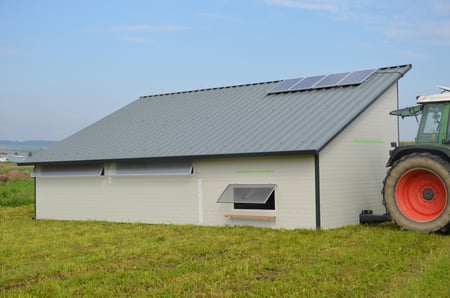 Der große Vorteil des mobilen Hühnerstalls ist nun, dass der Stall einfach mit Hilfe eines Traktors auf ein neues